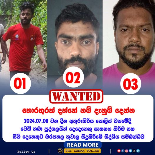 ග්රේට්වෙසටන් වත්ත, තලවකැලේ ප්රදේශයේ පදිංචි පවුල් තුනකට අයත් වයස අවුරුදු 14 ක් වූ පිරිමි දරුවෙක් සහ වයස අවුරුදු 16 ක් වූ ගැහැණු දරුවන් තිදෙනෙකු තම නිවෙස් අතහැර පිටවගොස් තිබේ. ග්රේට්වෙස්ටන් පාසල වෙත අමතර පංති සඳහා පිටත්ව ගොස් නැවත නිවෙස් කරා පැමිණ නැති ඔවුන් නිවෙස් අතහැර යන බව දුරකථන ඇමතුමකින් නිවැසියන් දැනුවත් කර ඇති අතර ගමනාන්තයක් පිළිබඳව සඳහන් කර නොමැත. පිටවගොස් ඇති දිනය ලෙස වාර්තා වී ඇත්තේ 2024.07.14 වන දින උදෑසනය. -ළමුන් පිළිබඳ විස්තර- (01) මුරලි ක්රිෂ්ණන් ලක්ෂිකාවයස අවුරුදු 16 යි (ස්ත්රී) – උස අඩි 05 අගල් 01 – කෙට්ටු, තලෙලු අවසන් වරට ඇඳ සිටි ඇදුම – රතු පැහැ කමිසයක්, රෝස පාට ජර්සියක් සහ රතු පැහැ ලෙගින් එකක් (02) රාජගුරු ගෝබිශාගර්වයස අවුරුදු 14 යි ( පුරුෂ) – උස අඩි 05 අගල් 01 – තලෙලු පැහැයඅවසන් වරට ඇඳ සිටි ඇදුම් – ලා කහ පැහැ අත් දිග කමිසයක්, ලා නිල් පාට ඩෙනිමක් (03) රාජගුරු මිදුෂාවයස අවුරුදු 16 යි (ස්ත්රී) – උස අඩි 05 – තලෙලු පැහැයඅවසන් වරට ඇඳ සිටි ඇදුම් මෙරුම් පාට දිග බලවුස් එකක්, නිල්පාට ඩෙනිම් කලිසමක් (04) සුන්දර් රාජ් දර්ශනීවයස අවුරුදු 16 යි (ස්ත්රී) – උස අඩි 05 – තලෙලු පැහැයඅවසන් වරට ඇඳ සිටි ඇදුම් – තද නිල් පාට දිග බ්ලවුස් එකක් සහ සුදු පාට ලෙගින් එකක් යම් තොරතුරක් ඔබත් දන්නේද? දැනුම් දෙන්න –තලවකැලේ පොලිස් ස්ථානය – 052 2258222තලවකැලේ පොලිස් ස්ථානාධිපති – 071 8591103