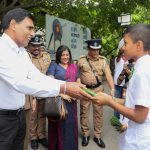 School supplies were distributed among a large number of students. Having appreciated the service extended by every police officer who is dedicated to ensure peace in the country by performing duties throughout the day, the Minister and the Acting Inspector General of Police create awareness on the upcoming programs to be implemented for the welfare of the officers.