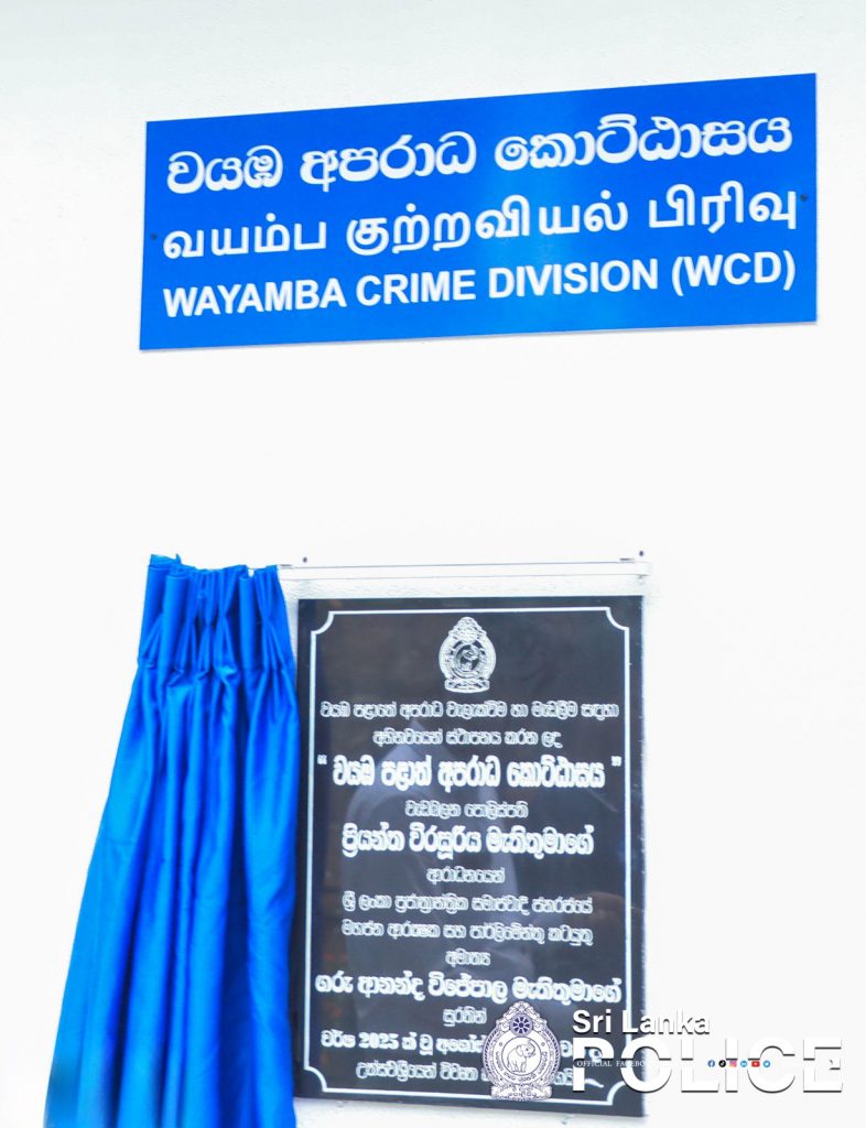 Concurrent with the reorganisation of the administrative structure of the Sri Lanka Police, each province is to be empowered with a Provincial Crime Division. Accordingly, the North Western Provincial Crime Division, built within the Wehera Police Complex, was declared open on 03.08.2025 under the leadership of the Hon. Minister of Public Security, Ananda Wijepala, with the participation of the Acting Inspector General of Police, Priyantha Weerasooriya.