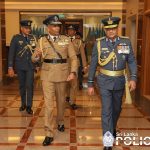 The Inspector General of Police was received by the Commanding Officer of the Air Force Station, Sri Jayewardenepura, Air Commodore Buddhika Piyasiri, and the Guard of Honour has been conferred.