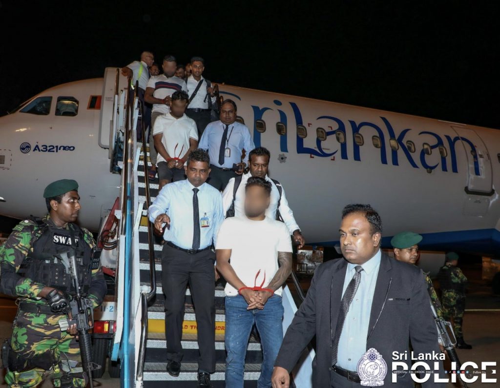 The suspects, Kehelbaddara Padme, Commando Salintha, Backo Saman, Panadura Nilanga, and Tambili Lahiru, who were arrested in Indonesia on 27.08.2025, completed the most outstanding operation ever carried out by the Sri Lanka Police in a foreign country, and were brought back to the country by air on the night of 30.08.2025.