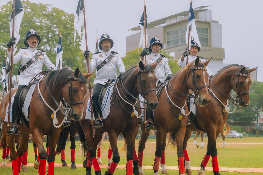 Following the successful conclusion of the ceremonial proceedings, spectacular displays were performed by the Police Western Band, the Police Special Task Force, the Police Kennels Division, and the Police Cultural Division, through which the diverse skills and resources of the Sri Lanka Police were exhibited to all those present in a splendid manner.