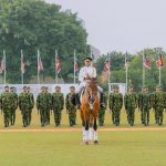 The anniversary celebration commenced with the ceremonial parade, consisting of 5 platoons led by platoon commanders, who are senior police officers on horseback, giving salute to the President. Then a short silence was observed in honour and memory of the 3050 police officers who have lost their lives so far in the line of duty, prior to the welcome speech by the Inspector General of Police, Priyantha Weerasooriya (Attorney-at-Law).