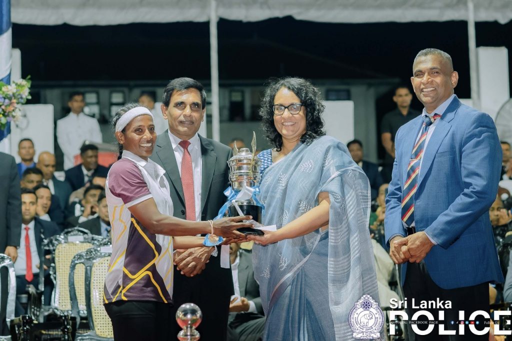 The shield for the best female athlete of the overall athletics event – Criminal Investigation Department Female Police Constable 7809 B.G. Sachithra Harshani