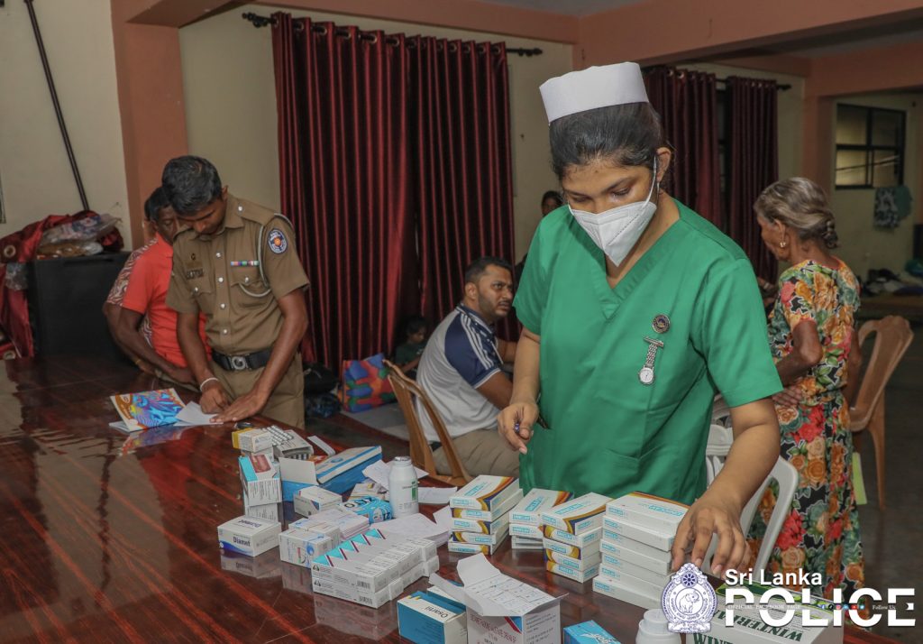 The IGP then met with our fellow citizens at the security camp established at St. Joseph’s Church, which is housing the residents of the Grandpass Police Division who were affected by the floods, and also attended a medical clinic conducted for them by the doctors and nursing staff of the Police Hospital.