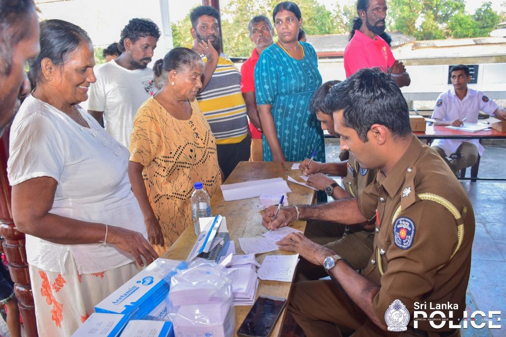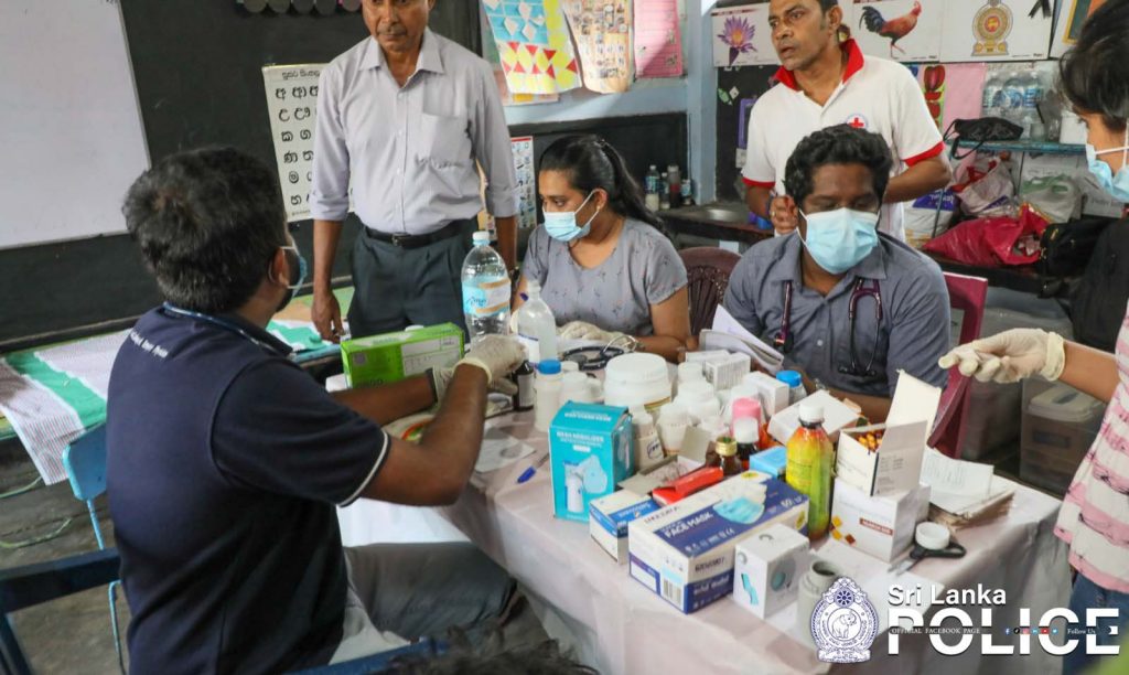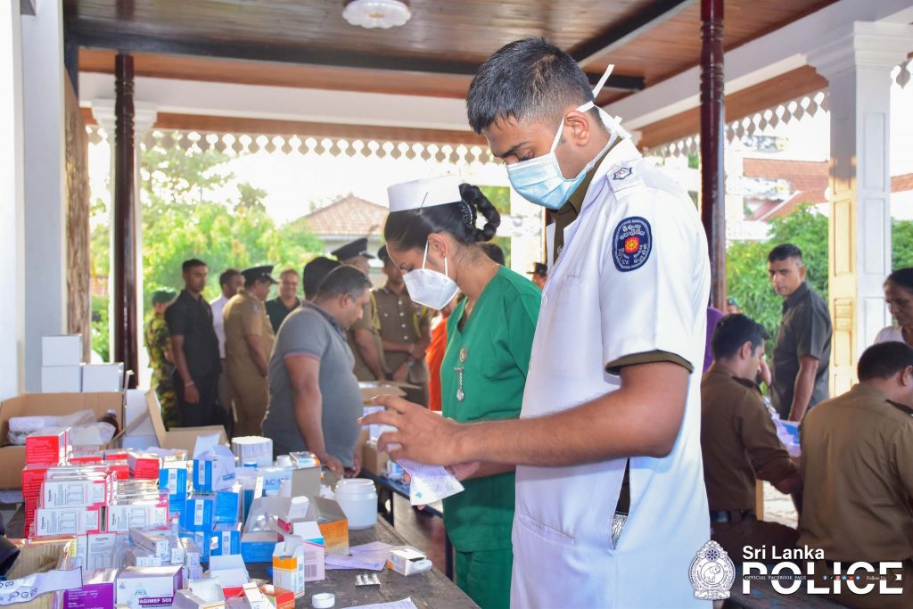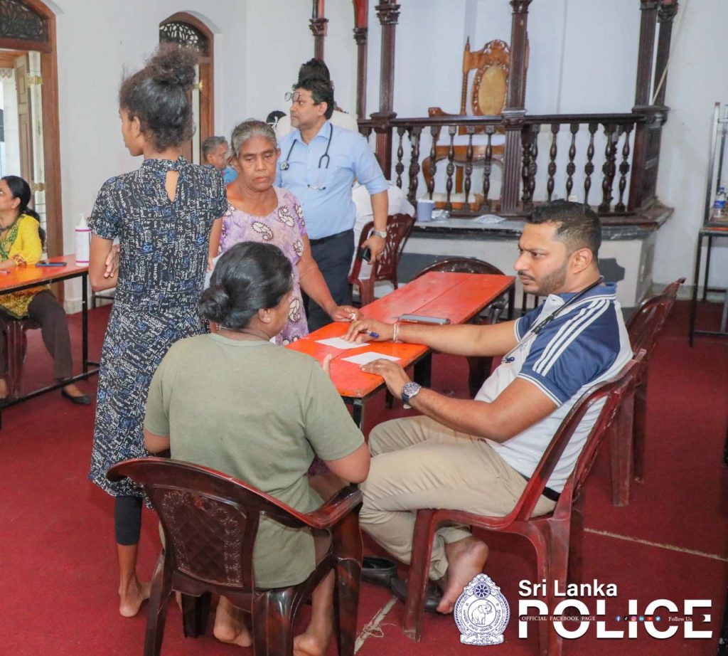 A medical camp and dry food distribution program were organized by the Police Medical Services Division at the Sedawatte Weheragoda Ancient Rajamaha Viharaya to support the flood-affected residents of the Sedawatte area.