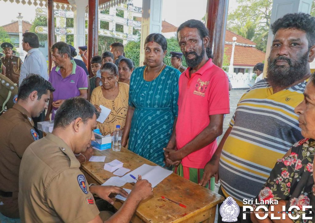 The medical camp was conducted today at the Suraksha Camp established at the Sedawatte Purana Rajamaha Viharaya, where displaced individuals are currently being sheltered. The event was graced by the Inspector General of Police, Attorney-at-Law Priyantha Weerasuriya. A team of five doctors, along with nursing staff from the Police Hospital, provided medical services during the program. Nearly 200 affected individuals received medical check-ups, essential medications, and health guidance.