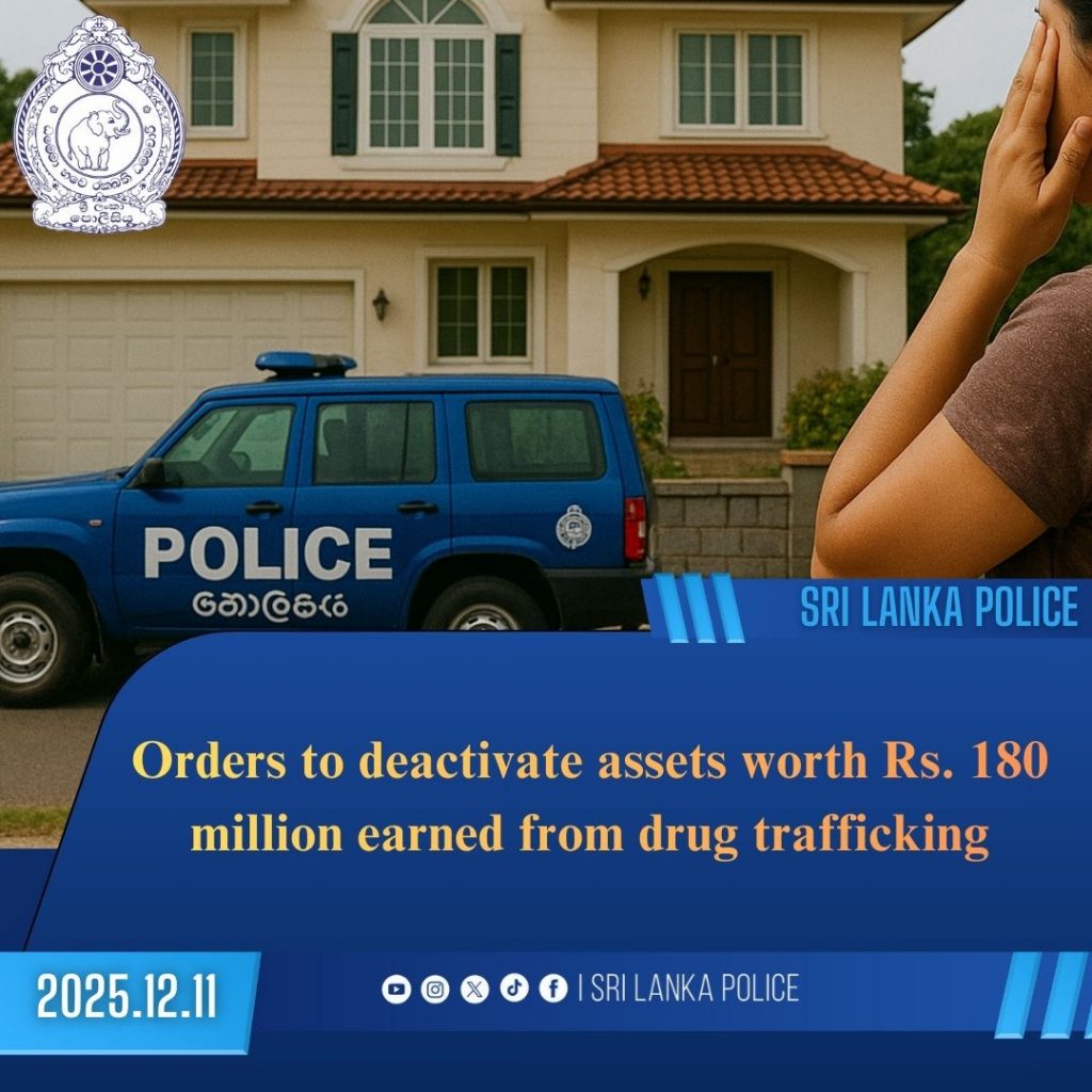 During the course of the assets investigation, it was uncovered that the suspect had acquired a number of properties using money earned through illegal activities and had registered these assets in the name of his wife. Accordingly, the Embilipitiya and Tangalle High Courts have issued orders under the Prevention of Money Laundering Act to freeze these properties. The said orders have been extended for a further period of seven days with effect from 11 December 2025.