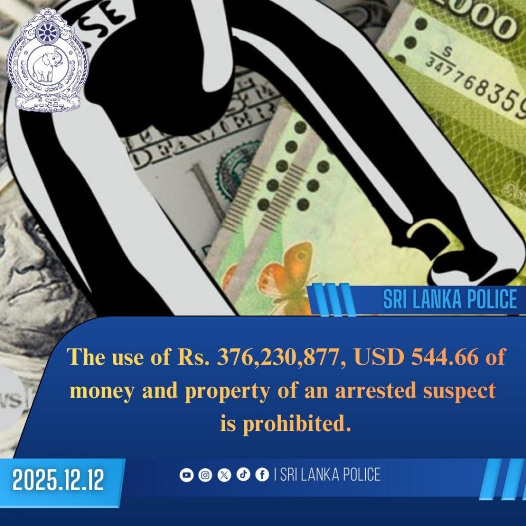 Following an investigation in accordance with the provisions of the Prevention of Money Laundering Act, a 39-year-old drug trafficker residing in Ibbagamuwa, has been ordered to freeze the following properties and assets purchased with the proceeds of drug trafficking for a period of 7 days from 10.12.2025.