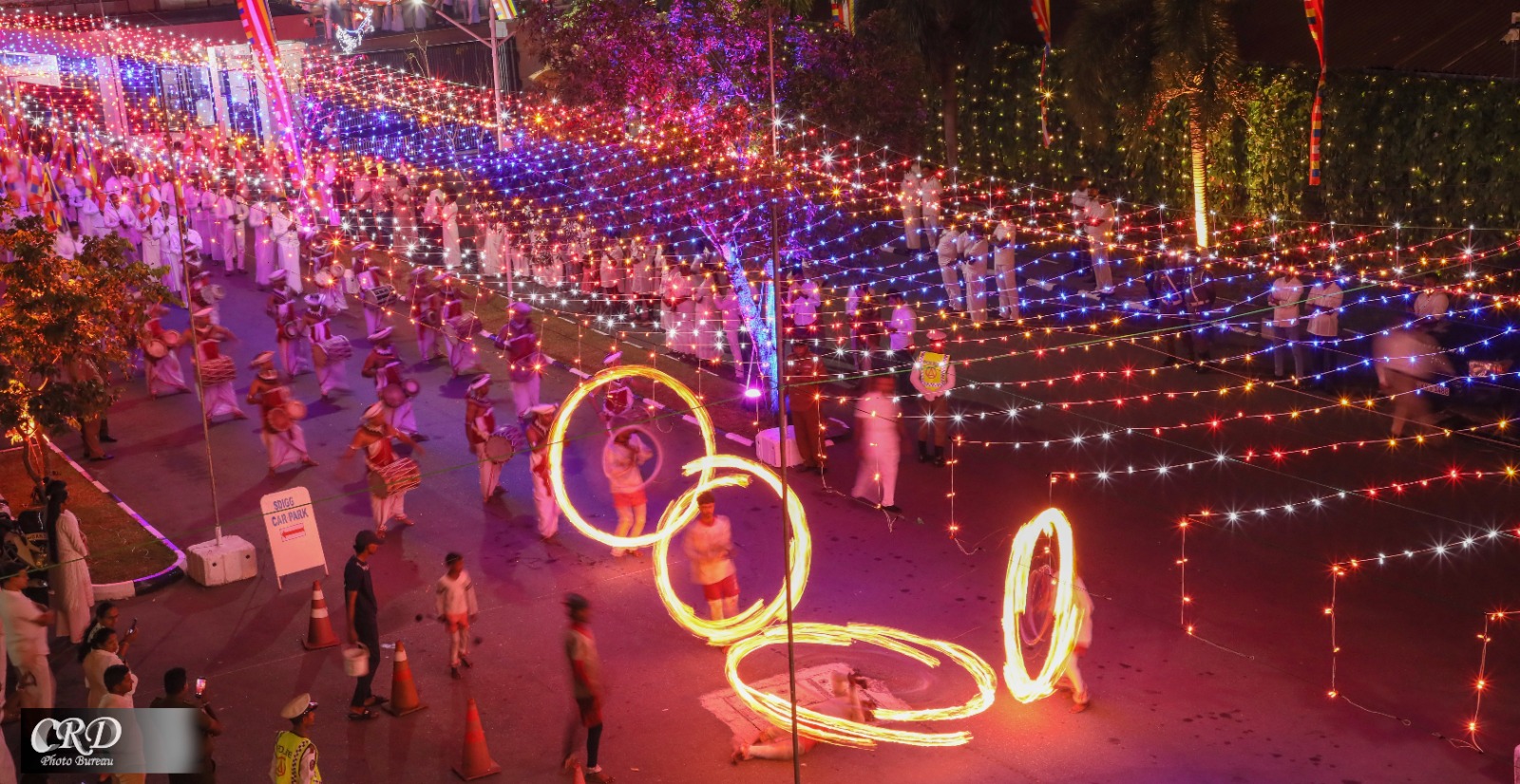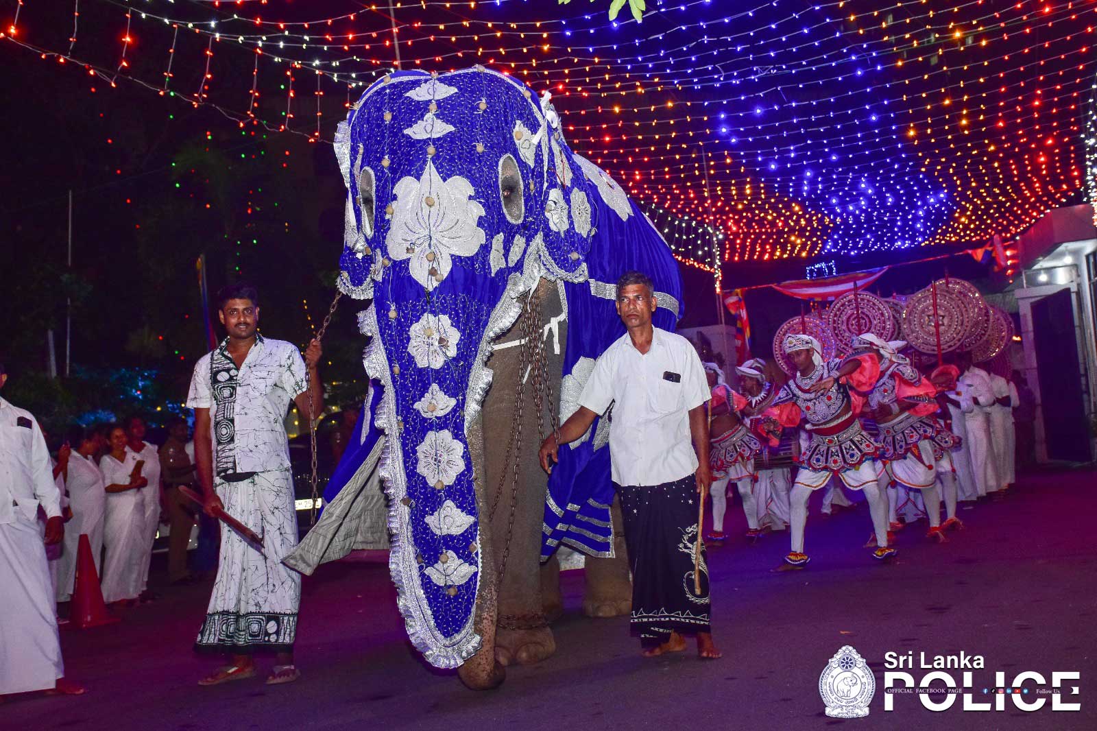 A graceful procession, comprising two elephants and traditional dance troupes from the Police Cultural Division, commenced from the Lake House Roundabout.