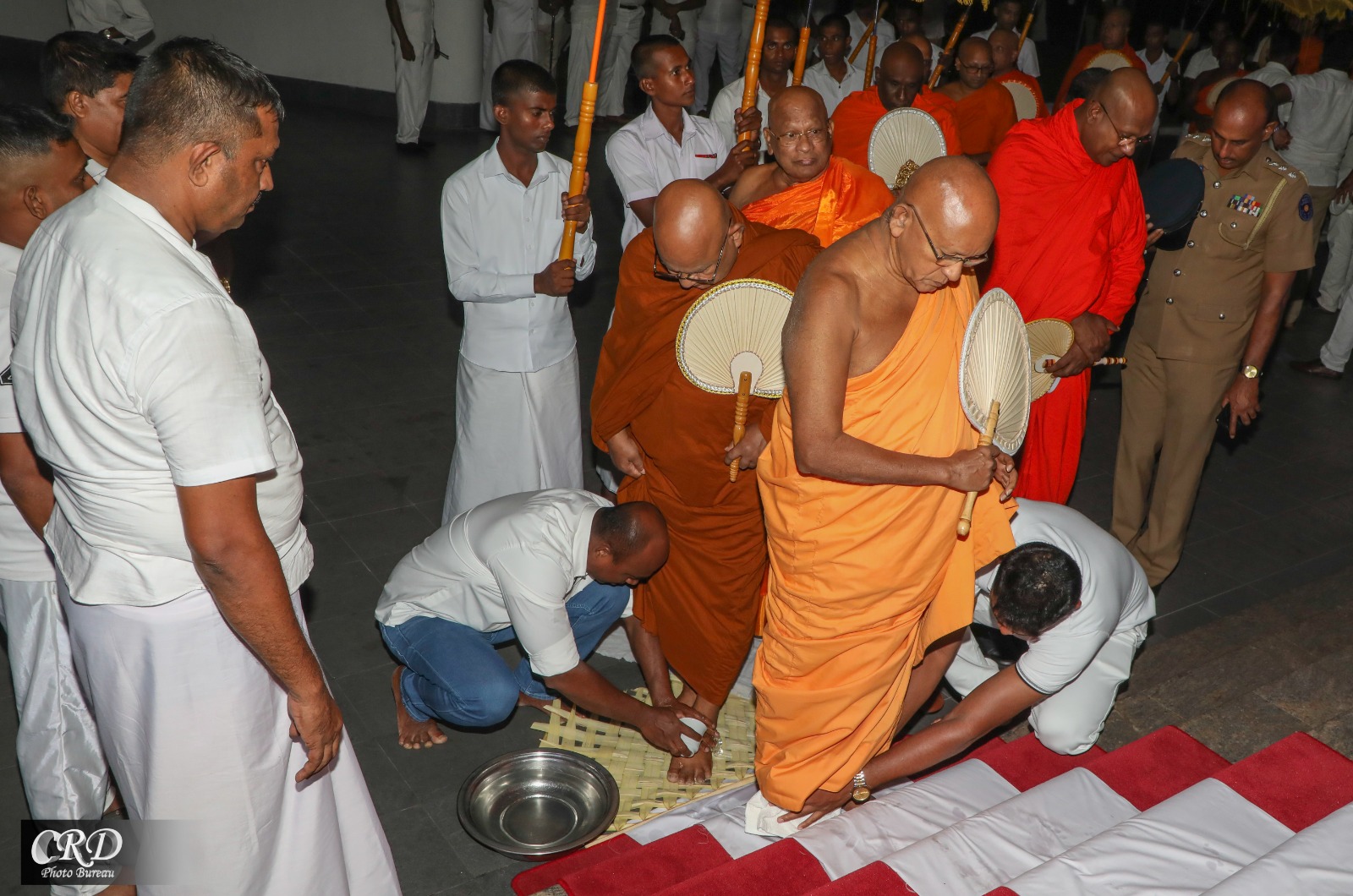 The Chief Incumbent of Hunupitiya Gangaramaya Viharaya, Venerable Kirinde Assaji Thero, who presided over the Pirith ceremony, guided the Maha Sangha to the Pirith Mandapaya.