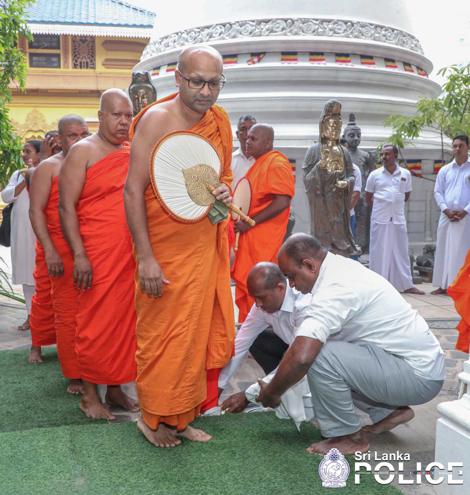 On the following morning, in connection with the all-night Pirith Chanting conducted at Police Headquarters on 30.12.2025, a group of senior police officers, led by the Inspector General of Police, Attorney-at-Law Mr. Priyantha Weerasooriya, visited the Hunupitiya Gangaramaya Temple to offer heel alms on behalf of twenty-five individuals.