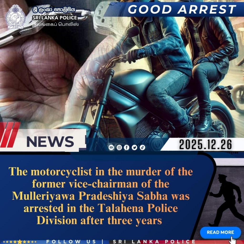 The Western Province Southern District Crime Division has arrested the suspect who acted as the motorcyclist in the crime on the morning of 25.12.2025 in the Talahena area of the Malabe Police Division.