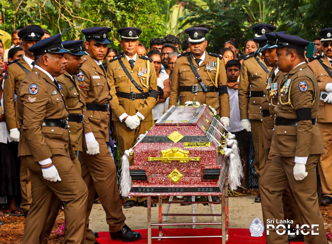 The officer who died on duty was promoted to the rank of Police Sergeant on the basis of post-promotion. IGP Attorney-at-Law Mr. Priyantha Weerasooriya visited the residence in Weeriyagama, Sooriyawewa where the body was laid to rest and paid his last respects.