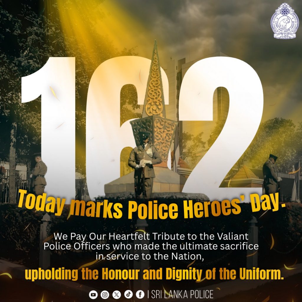 Accordingly, today (21), we solemnly observe the 162nd Police Heroes’ Day, paying tribute to the courageous officers who made the ultimate sacrifice in safeguarding the nation. This includes those who laid down their lives during the nearly three-decade-long Sri Lankan Civil War, as well as those who perished in the line of duty while confronting threats to public peace, law, and national security.