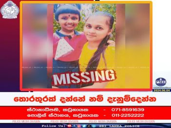 අතුරුදහන් බවට පැමිණිල්ලක් ලැබී ඇති, ඡායාරූපයේ දැක්වෙන කාන්තාව හා ඇගේ දියණිය සොයා පොලිස් විමර්ශන ක්රියාත්මකයි.