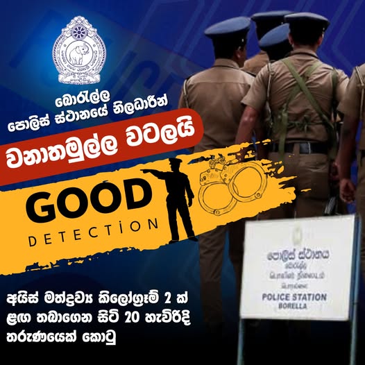 Officers of Police Station Borella raid WanathamullaA, 20-year-old youth arrested for possession of 2 Kgs. of the narcotic, ice
