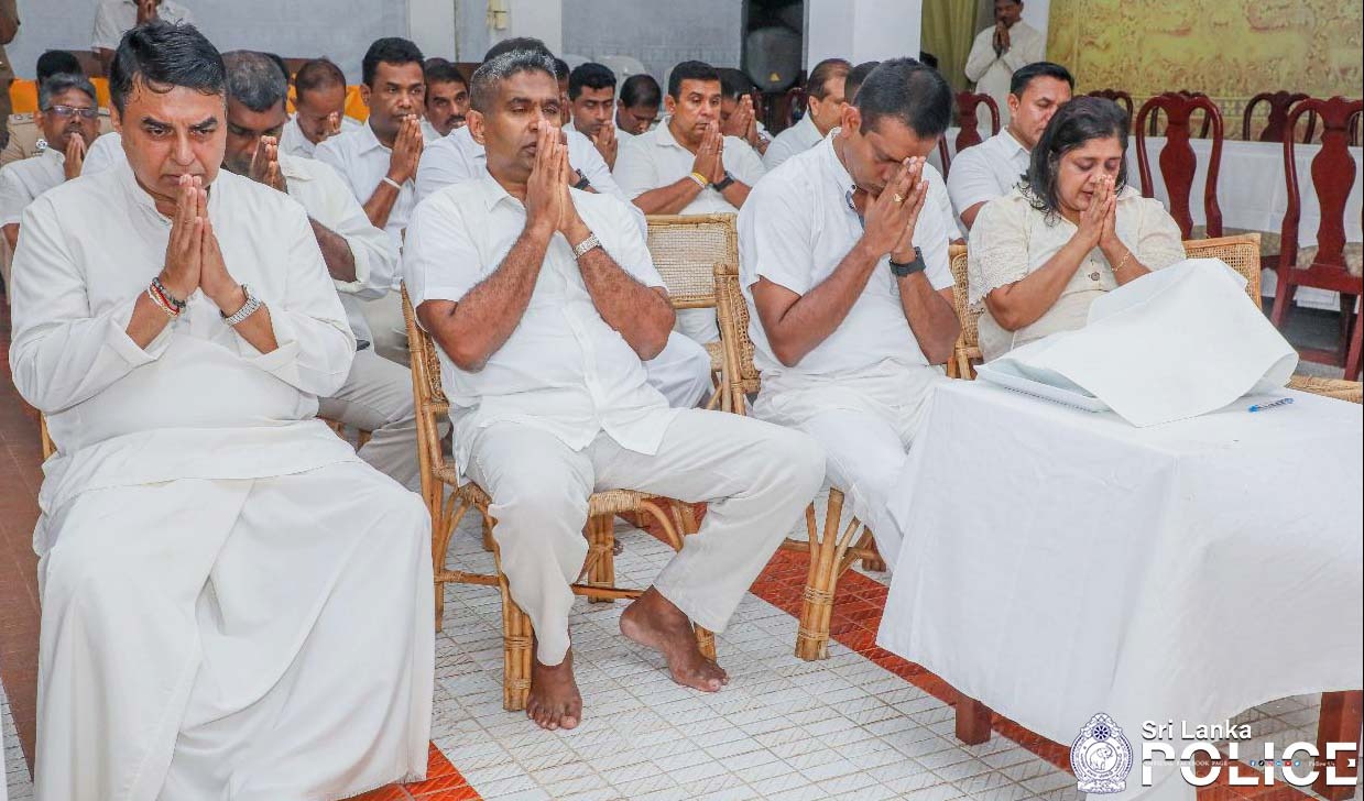 The annual year-end overnight Pirith chanting ceremony conducted by the Sri Lanka Police, invoking blessings for the new year, was held at the Police Headquarters on the night of 30.12.2024 under the patronage of Hon. Ananda Wijayapala, Minister of Public Security, and with the participation of Mr. Ravi Seneviratne, Senior Deputy Inspector General (Retired), Secretary to the Ministry of Public Security, and the Acting Inspector General of Police Mr. Priyantha Weerasooriya.