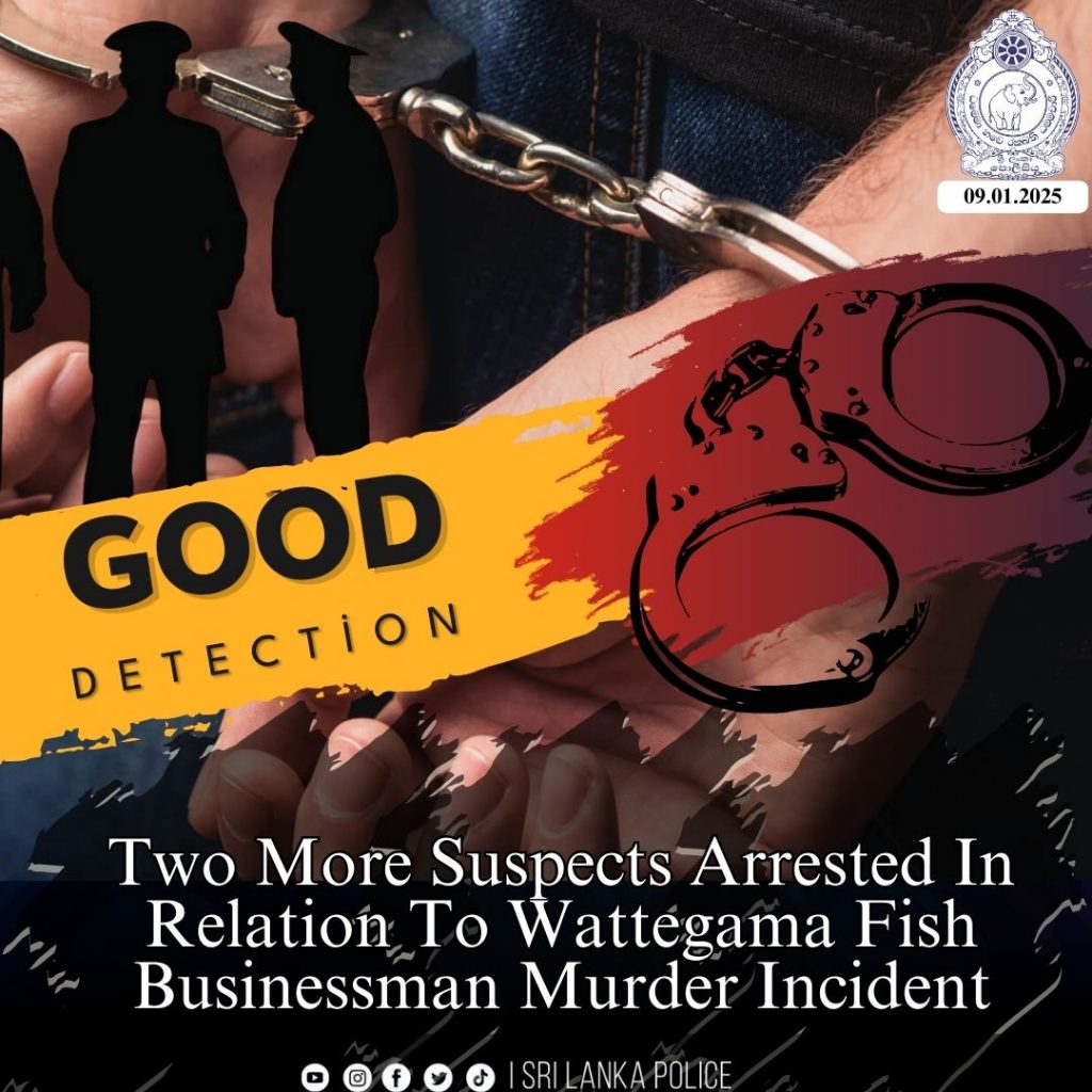 The officers of Wattegama Police Station arrested two more suspects on 08.01.2025 in relation to the crime in which a fish businessman was killed that was reported from Atalahagoda area on 04.01.2025.