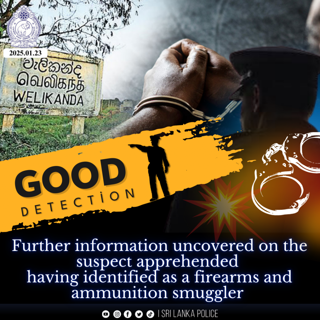 The suspect was previously arrested for the possession of a T-56 firearm, a magazine of the same, and 18 live ammunition and for selling a T-56 firearm to an individual for a sum of Rs. 200,000.