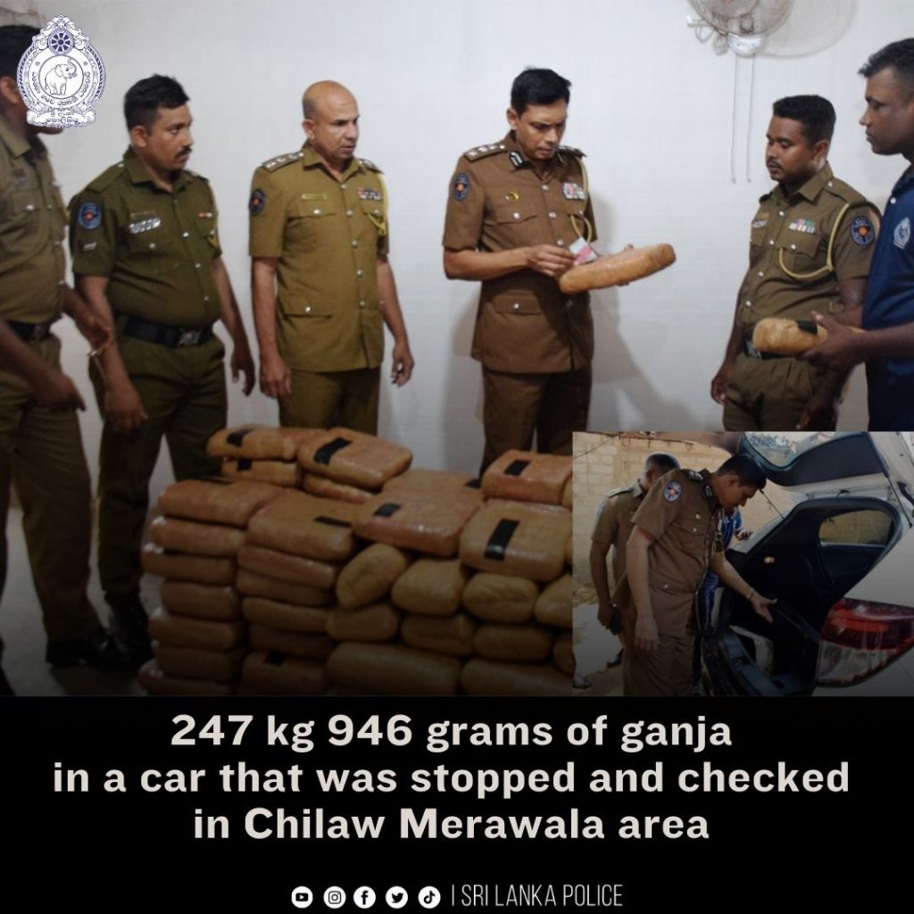 A person who was transporting 247 kg 946 grams of cannabis in a car was arrested by the officers of Anti-Corruption Unit of Chilaw Police Station on the night of 25.02.2025 near 72/03 bridge in Chilaw, Merawala.