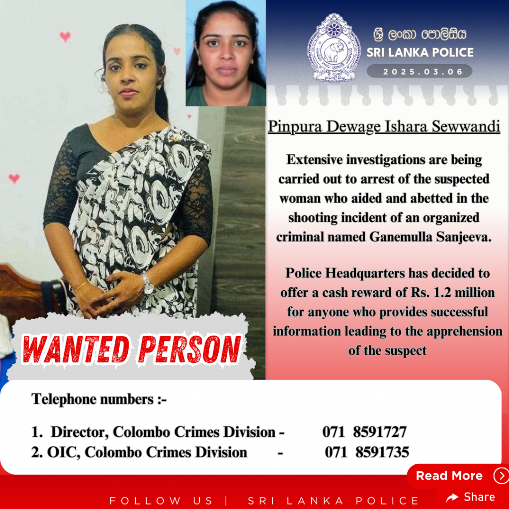 Acting IGP, Mr. Priyantha Weerasooriya has decided to offer a cash reward from the Police Reward Fund to anyone who provides reliable information regarding this suspect.