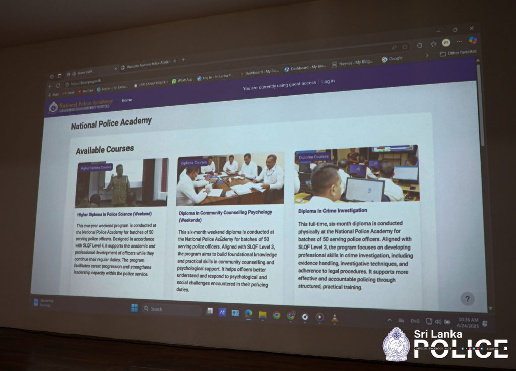 The National Police Academy, which currently conducts 02 Higher Diploma courses, 07 Diploma courses, 01 Advanced Certificate course and 24 short-term courses, has so far trained 6670 officers since 2023. Furthermore, it has also taken steps to conduct degree programmes for police officers in collaboration with state universities and has awarded degrees and diplomas to 735 officers.