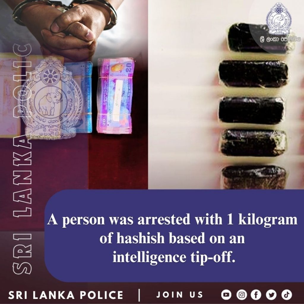 A person was arrested with 1 kilogram of hashish based on an intelligence tip-off.