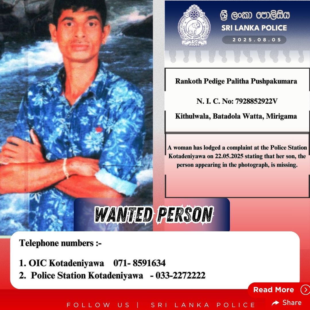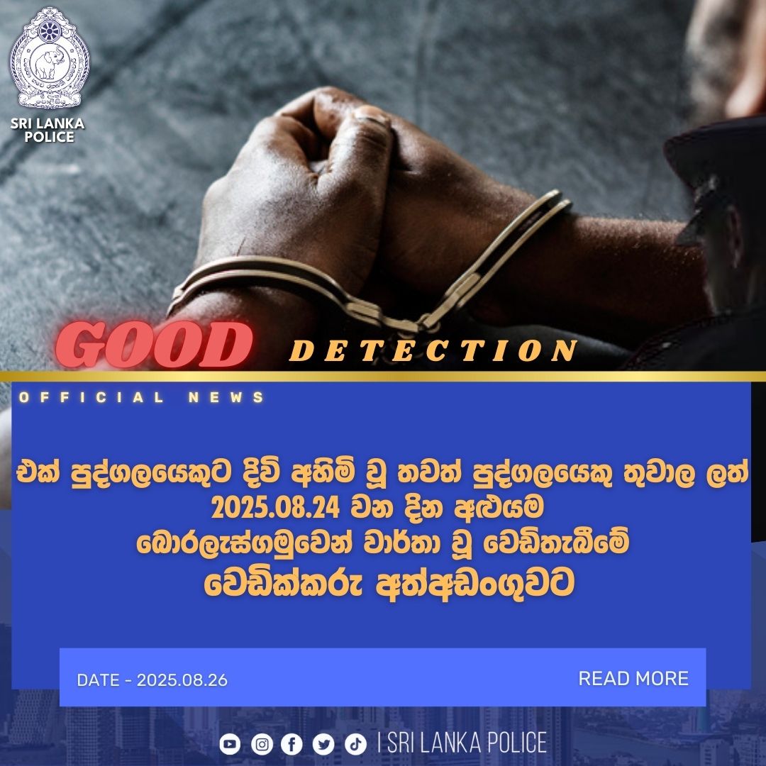 | උද්ඝෝෂ..> | 2025-08-29 11:38 | 8.1K | ||